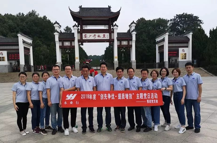 9月15日,永业行鄂西区党支部书记、总经理雷小明带领班子成员及支部党员一行14人前往爱国主义教育基地——湖南韶山,开展2018年度“创先争优 提质增效”主题党日活动。 支部一行上午抵达了花明楼,瞻仰刘少奇铜像、参观刘少奇纪念馆及故居等,深刻体会中国革命领袖艰苦奋斗、勇敢无畏的精神以及我党实事求是的优良作风。下午在毛泽东铜像广场,大家庄严的举起右手,重温入党誓词,缅怀一代伟人的丰功伟绩。 活动中,支部党员结合自己的工作,陈述了各自的业绩及存在的问题。全体党员表示,要铭记历史,继承、发扬革命传统,不忘入党初心、永葆党员先进性,在以