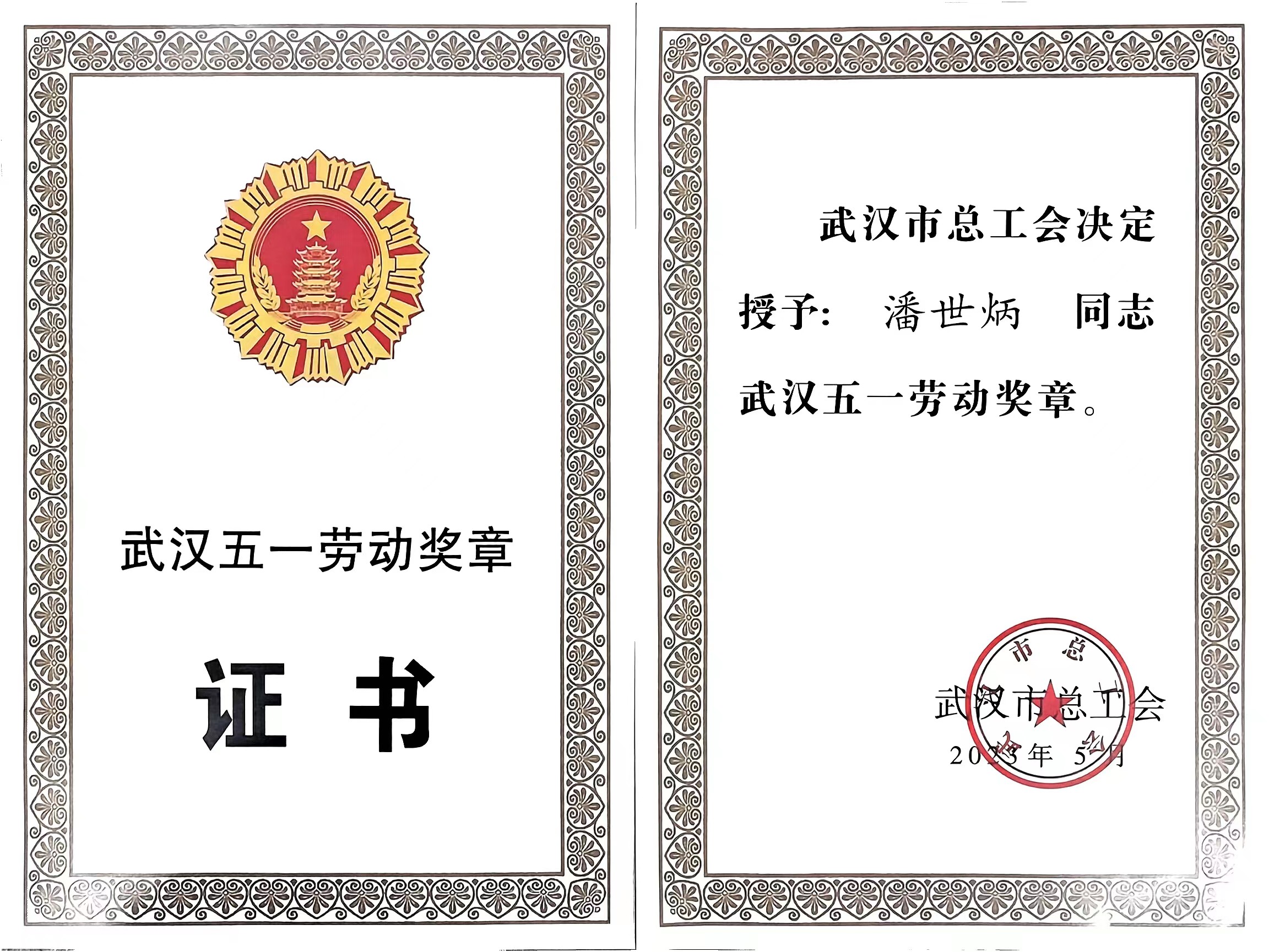 永业行党委书记、董事长潘世炳获武汉市总工会授予“武汉五一劳动奖章”